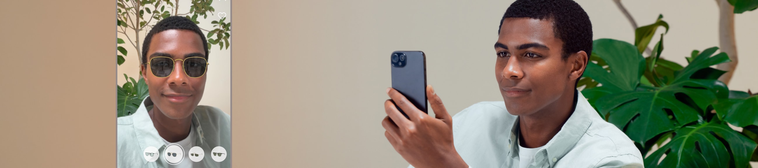 Die Sonnenbrille erscheint auf deinem Gesicht, sodass du die Modelle auswählen kannst, die am besten zu dir passen.
